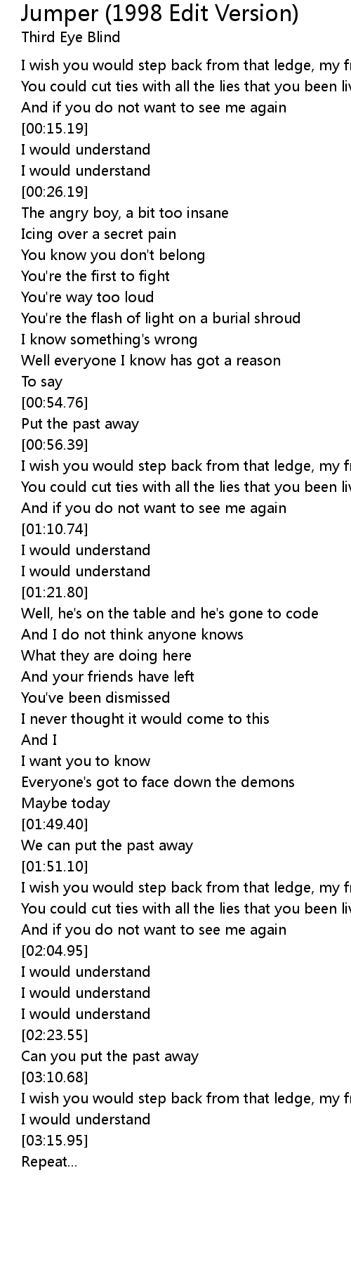 I would understand By Third eye blind (Jumper) - I Would Understand Lyrics